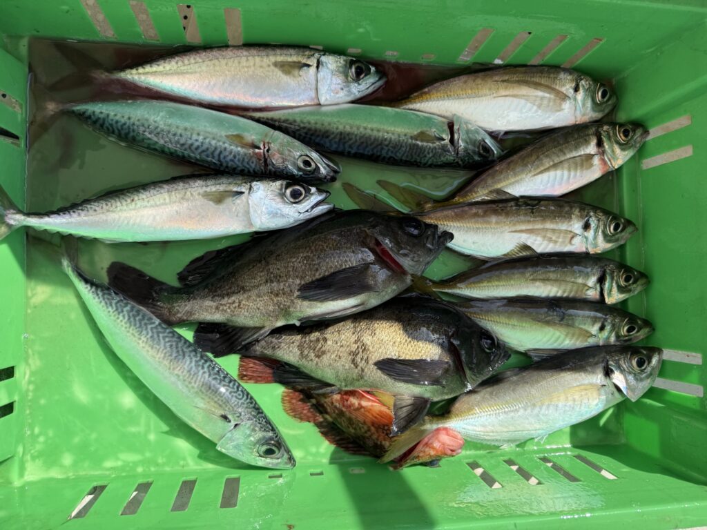 サバとアジが釣れるので
